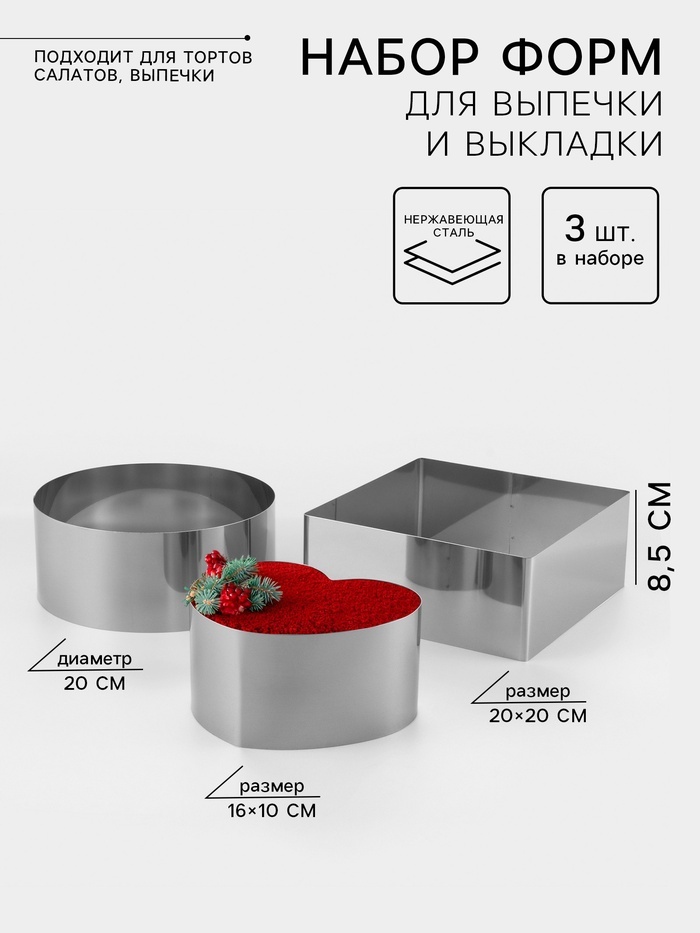 Формы для выпечки «Круг, квадрат, сердце», 3 шт.