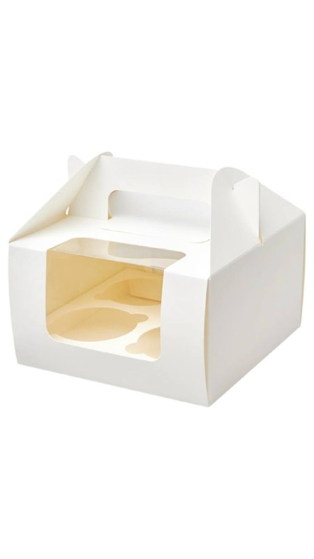 Коробка для капкейков 4 шт с окошком 160*160*195 мм (белый)