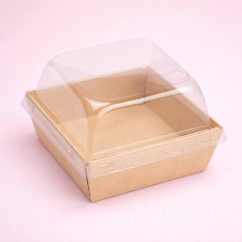 Бокс для бенто с прозрачным куполом 11*11*7 см МИНИ (крафт)