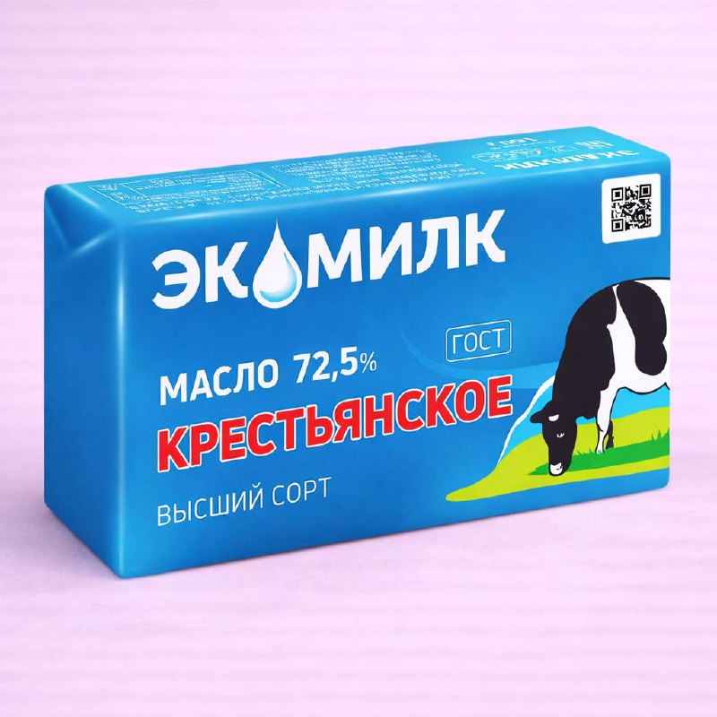 Масло Экомилк 72,5% Крестьянское несоленое, 160 гр