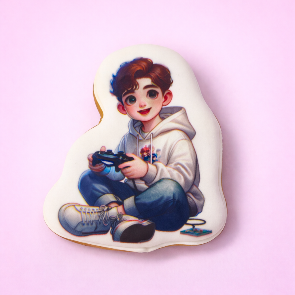 Состав: мука высшего сорта хлебопекарная, сахар, масло сливочное 82,5%, сухой яичный белок, сахарная пудра, вода, желток куриного яйца, сода, соль, смесь специй (корица, имбирь, мускатный орех, кардамон), красители пищевые.