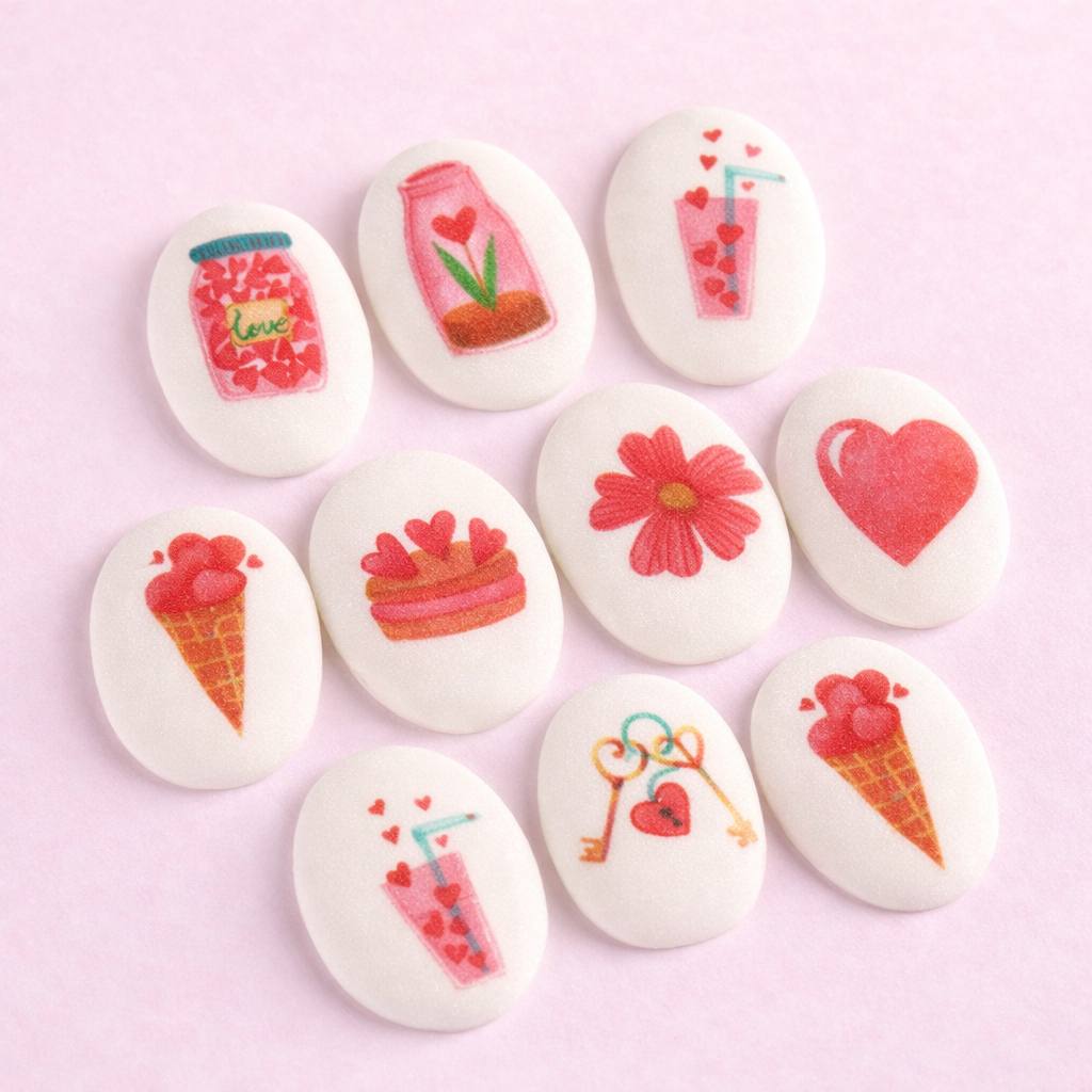 Посыпка медальоны сахарная с картинкой микс: «Любовь» для декора капкейков, торта, напитков.