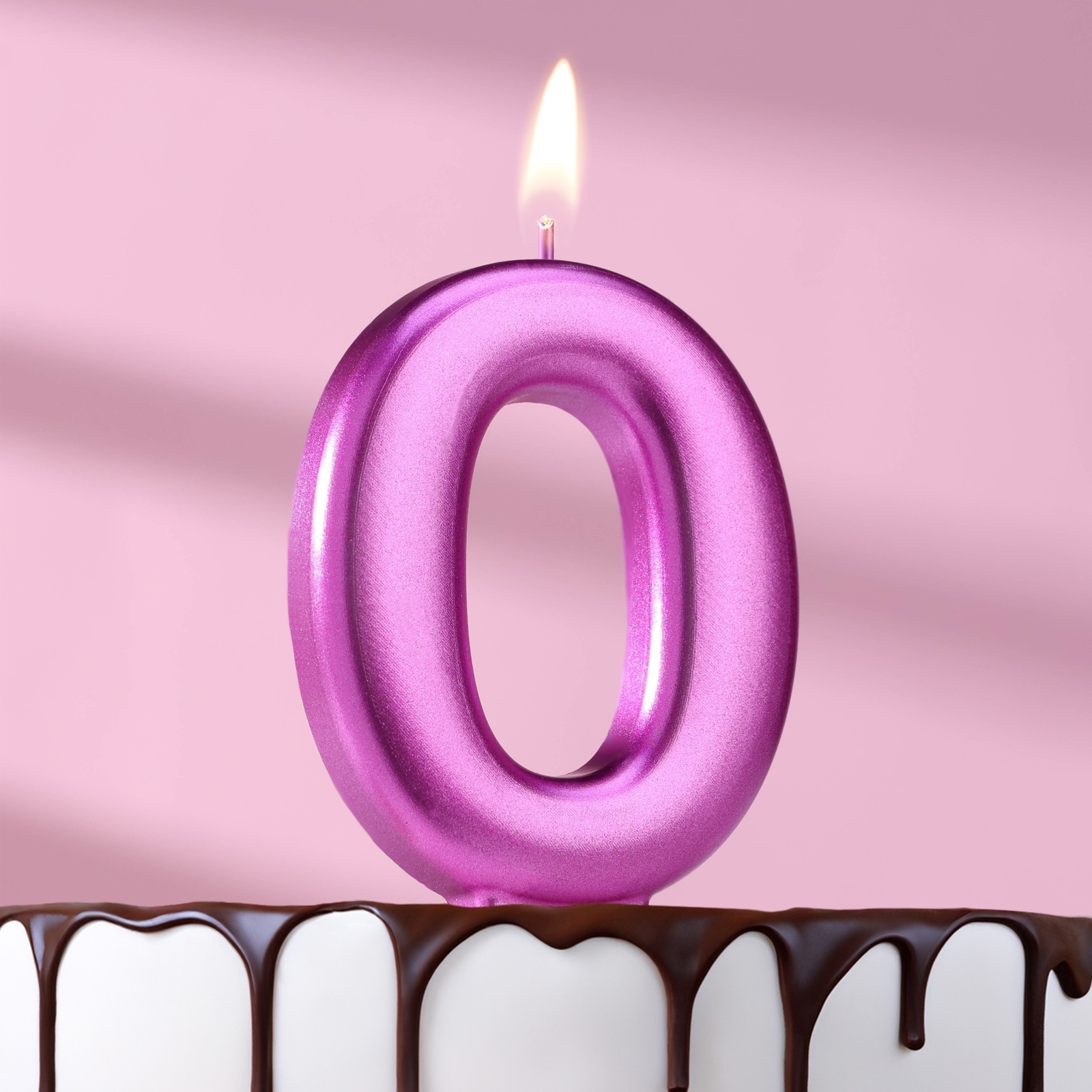 Свеча для торта «Европейская ГИГАНТ», фиолетовый металлик, цифра 0