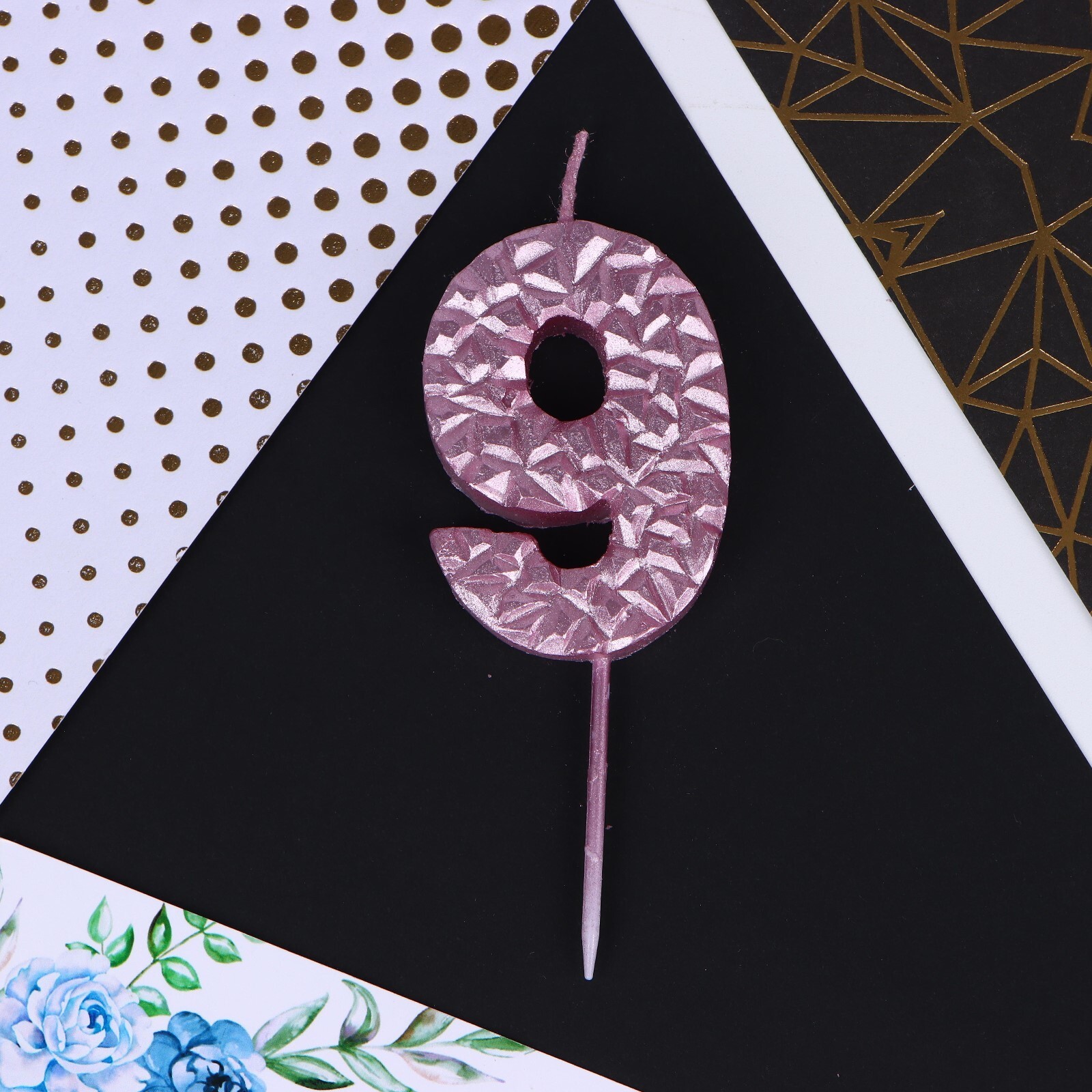 Свеча для торта розовая "Кристалл", цифра 9