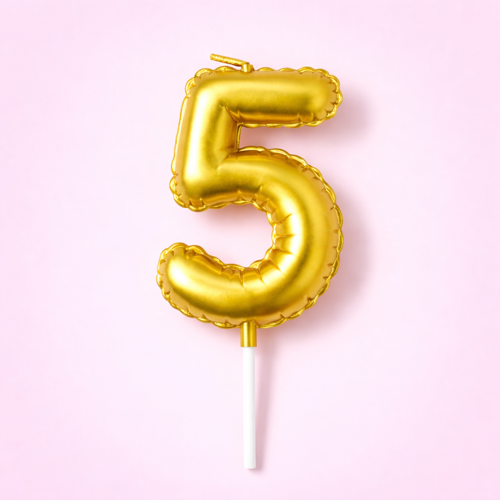 Свеча "Воздушный шар", золотая, цифра 5
