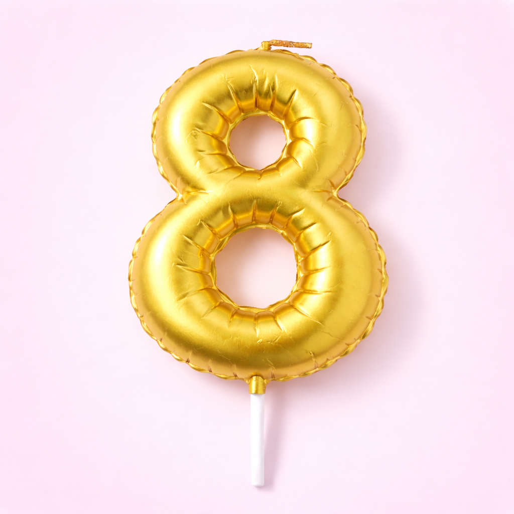 Свеча "Воздушный шар", золотая, цифра 8