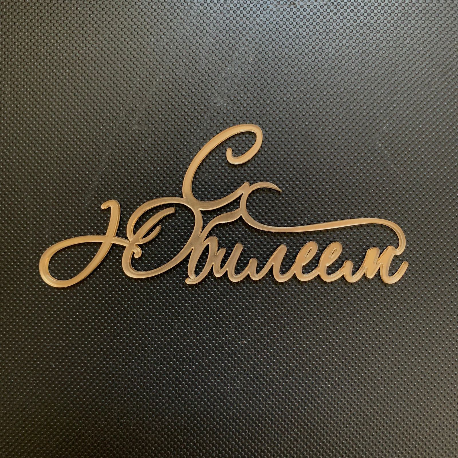 Бенто-топпер / С Юбилеем М5 / акрил зеркальный золото, 8*4см